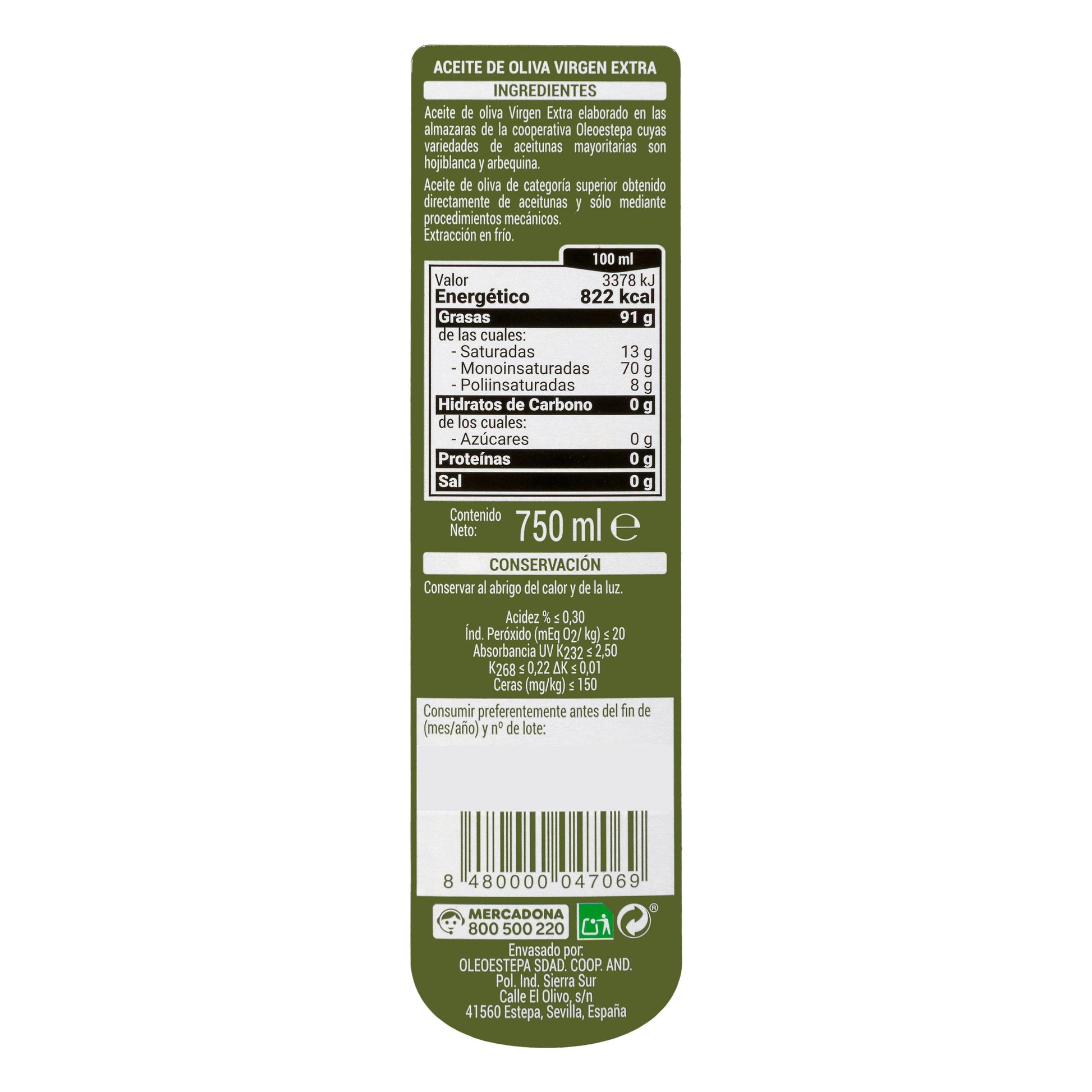 Aceite de Oliva Virgen Extra Hacendado Gran Selección