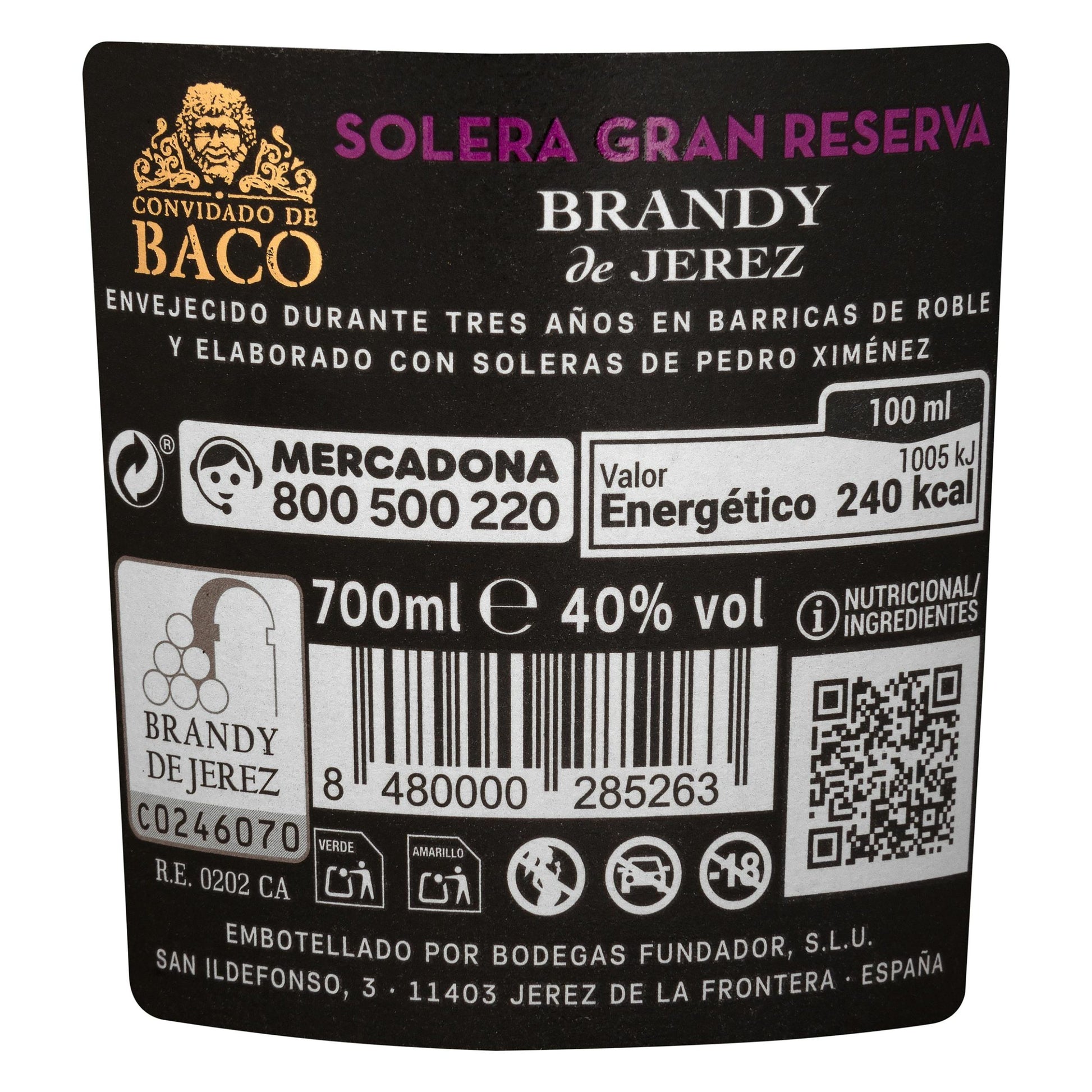 Brandy de Jerez solera Gran Reserva Convidado de Baco