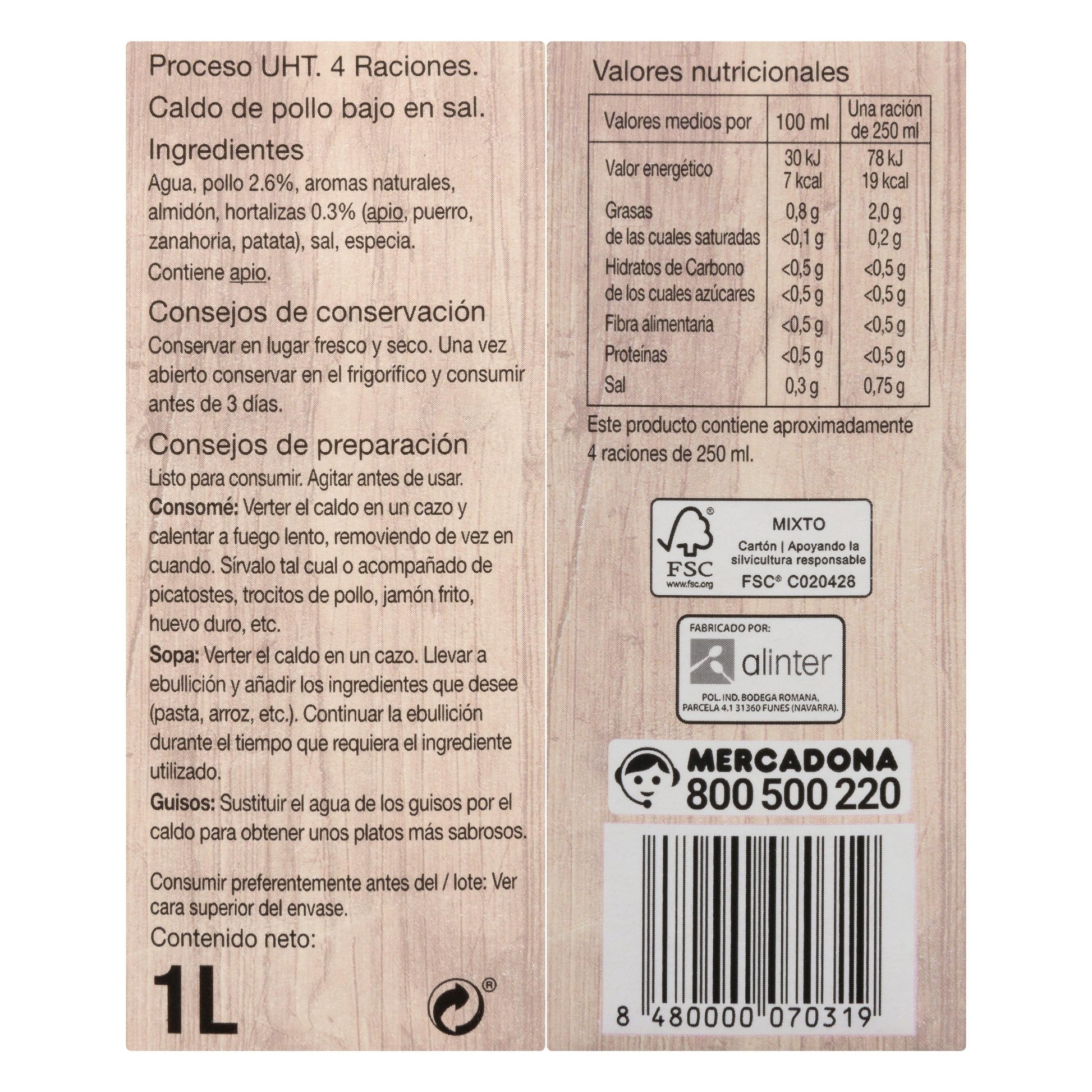 Caldo de Pollo Hacendado Bajo en Sal