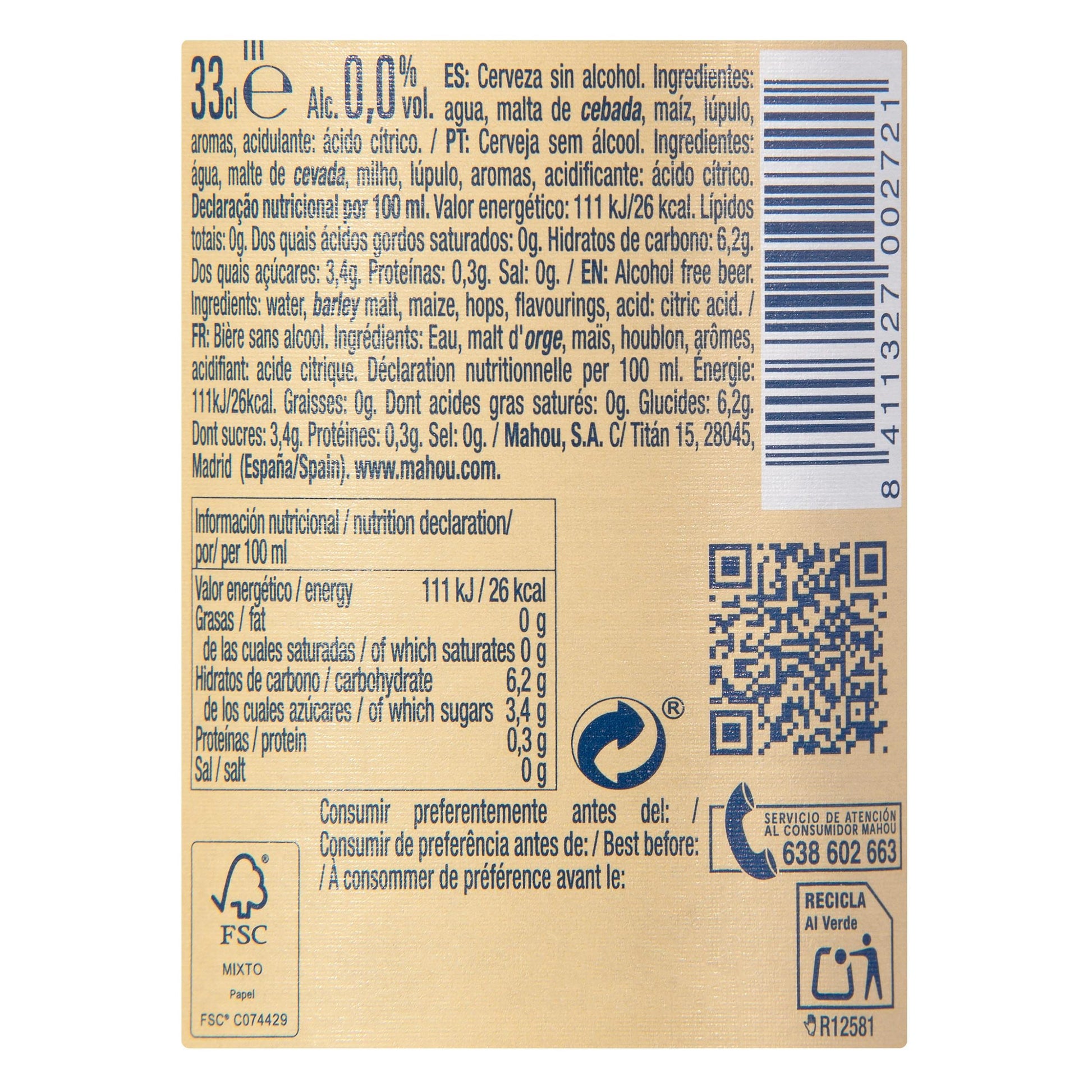 Cerveza 0,0% Sin Alcohol Tostada Mahou 33CL