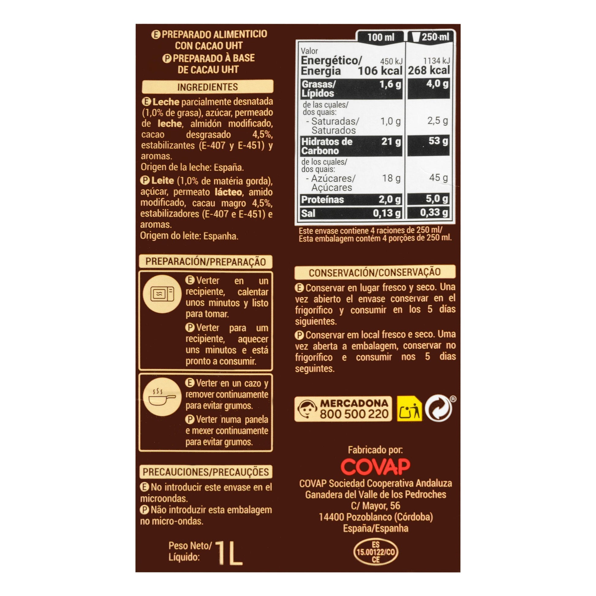 Chocolate Líquido a la Taza Hacendado