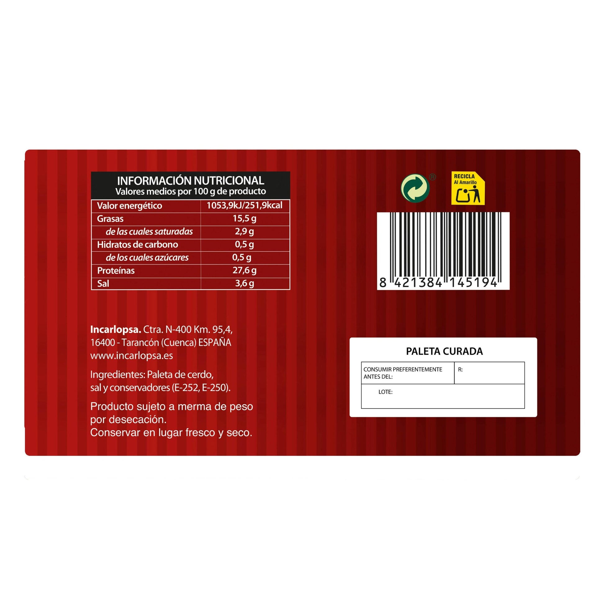 Paleta de Cerdo Curada Incarlopsa