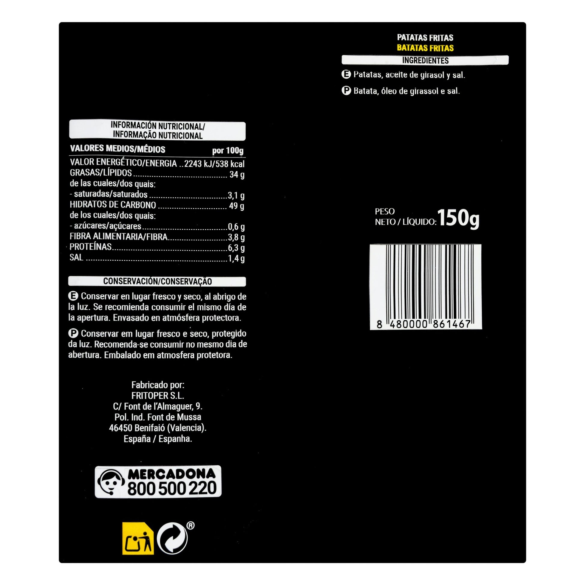 Patatas Fritas Extra Crujientes Hacendado