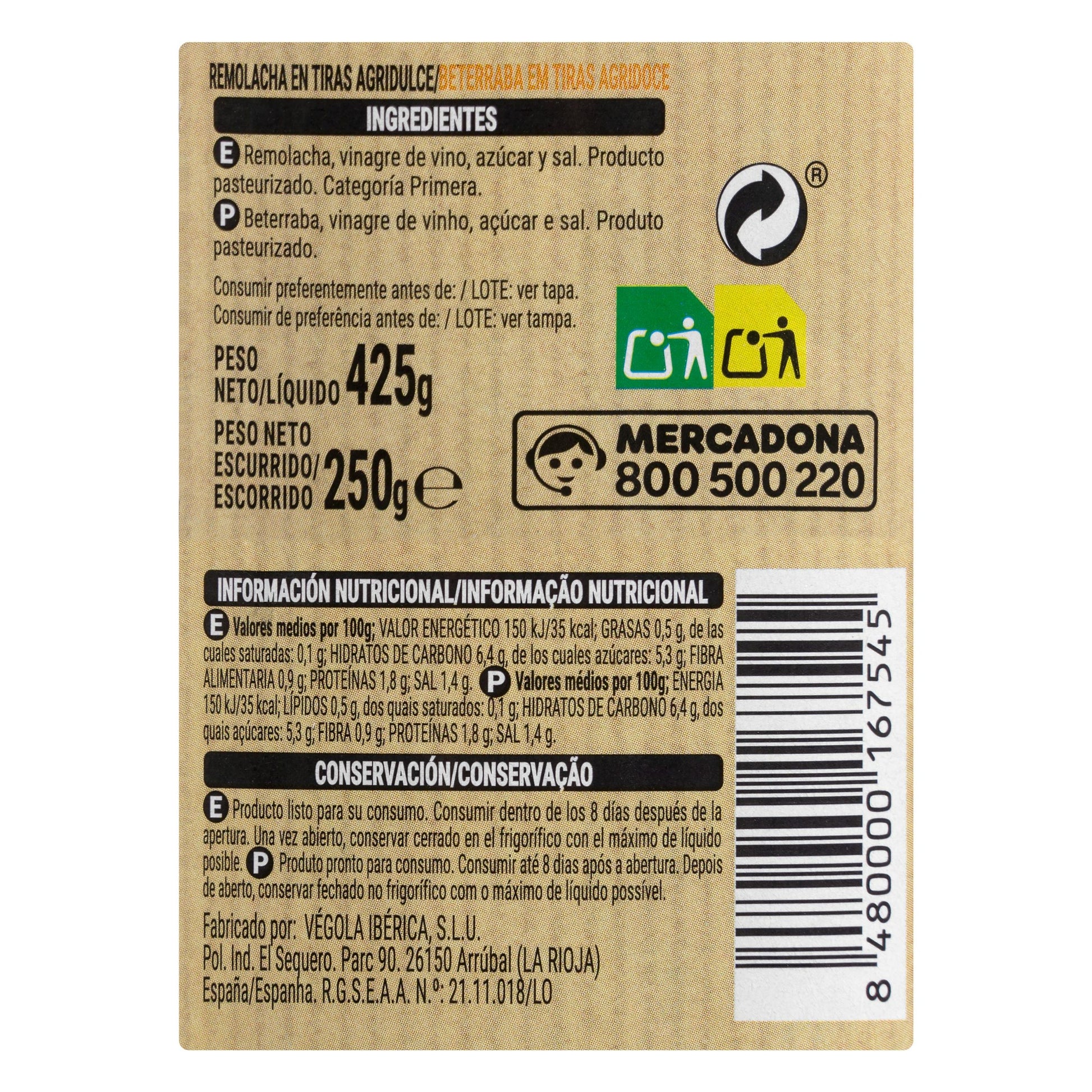 Remolacha en Tiras Hacendado
