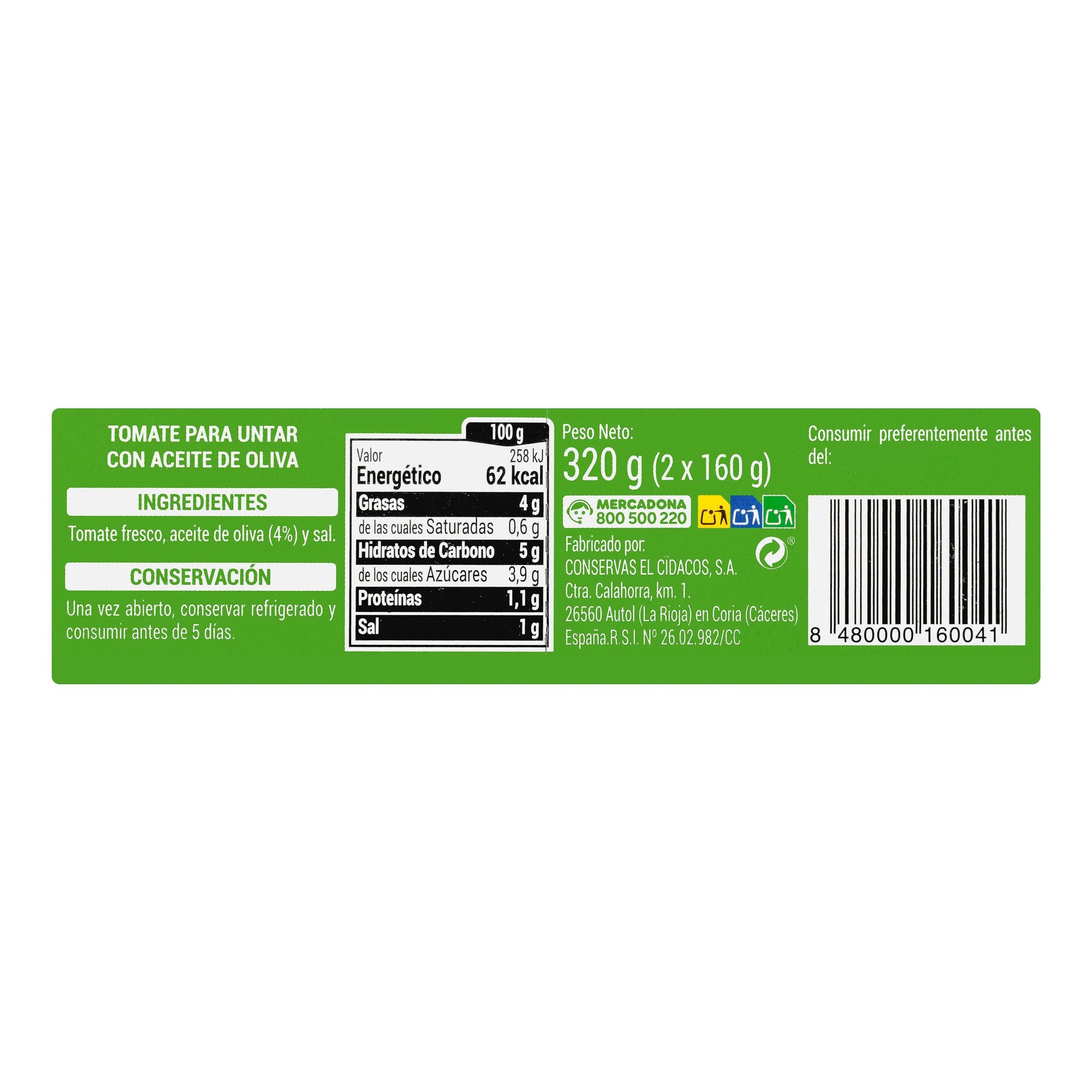 Tomate para Untar Hacendado con Aceite de Oliva Pack2